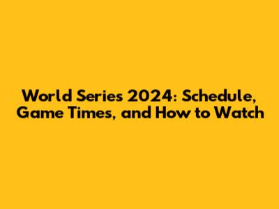 World Series 2024: Schedule, Game Times, And How To Watch
